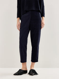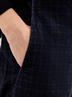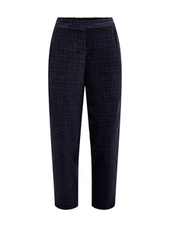 The Velvet Check Trousers by Mama B are tailored from soft velvet in a tonal check pattern. Their relaxed fit and tactile texture embody the brand’s luxurious yet understated aesthetic.