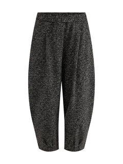The Textured Barrel Leg Trousers by Mama B feature a subtle flecked finish. Their sculpted leg and relaxed fit create a refined look for everyday sophistication.