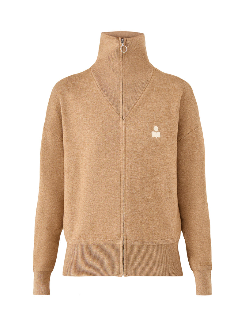 The Axelle High Neck Zip Knit by Isabel Marant Étoile is crafted in a soft wool blend with a high funnel collar and metal zip for subtle structure. A piece that balances texture and ease for refined everyday layering.
