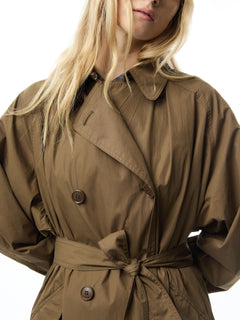 Elevate your outerwear with the Marant Étoile trench coat. Crafted from a plain-colored cotton blend, this long and loose-fitting trench coat incorporates a sophisticated turn-down collar with a hook, long raglan sleeves, and tapered cuffs. The double-breasted design and flap pockets add timeless appeal, while the protective back flap and full lining ensure comfort and practicality.