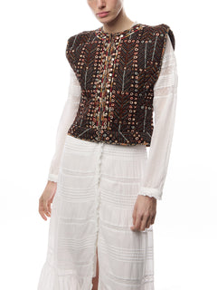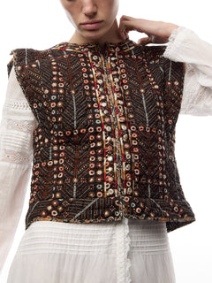 Introducing the Cerza Cardigan - a versatile piece that combines style and comfort. Made with printed, quilted cotton, this cardigan features structured armholes and hook fasteners for a flawless fit. Its embroidered details and printed lining add an elegant touch, while the cropped cut adds a modern twist.