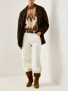 The Gesina Blazer by Isabel Marant Étoile captures the label’s fusion of masculine structure and feminine poise. Tailored in khaki check with soft shoulders and a relaxed cut, it lends effortless sophistication to everyday dressing.