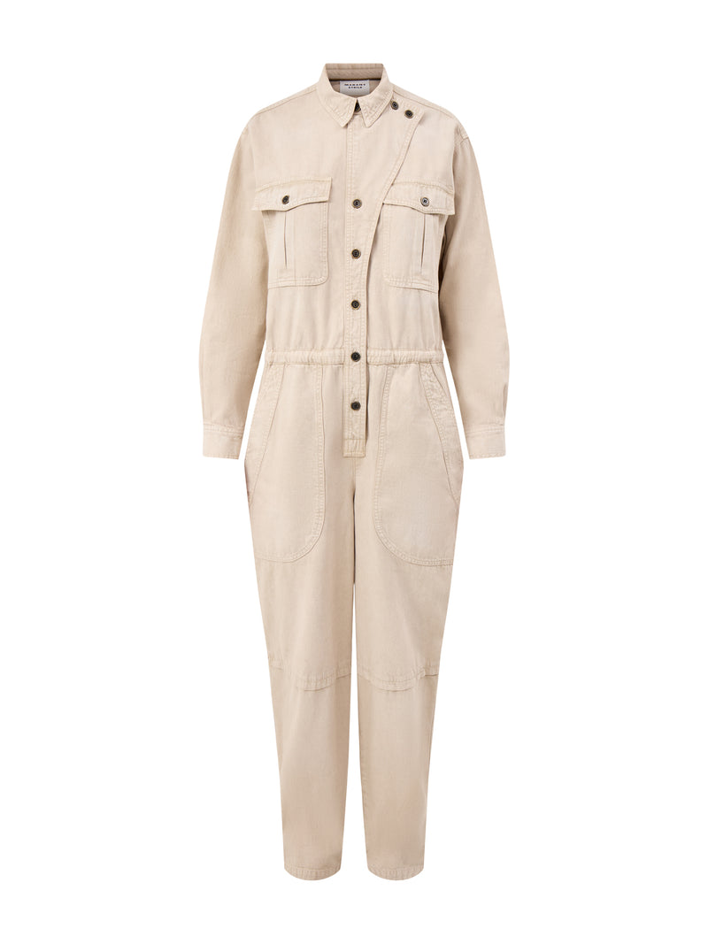 The Nadia Boiler Suit by Isabel Marant Étoile translates utilitarian design through a Parisian lens. Made from soft cotton twill with a cinched waist and straight leg, it combines ease of wear with considered detailing — contemporary, understated and endlessly versatile.