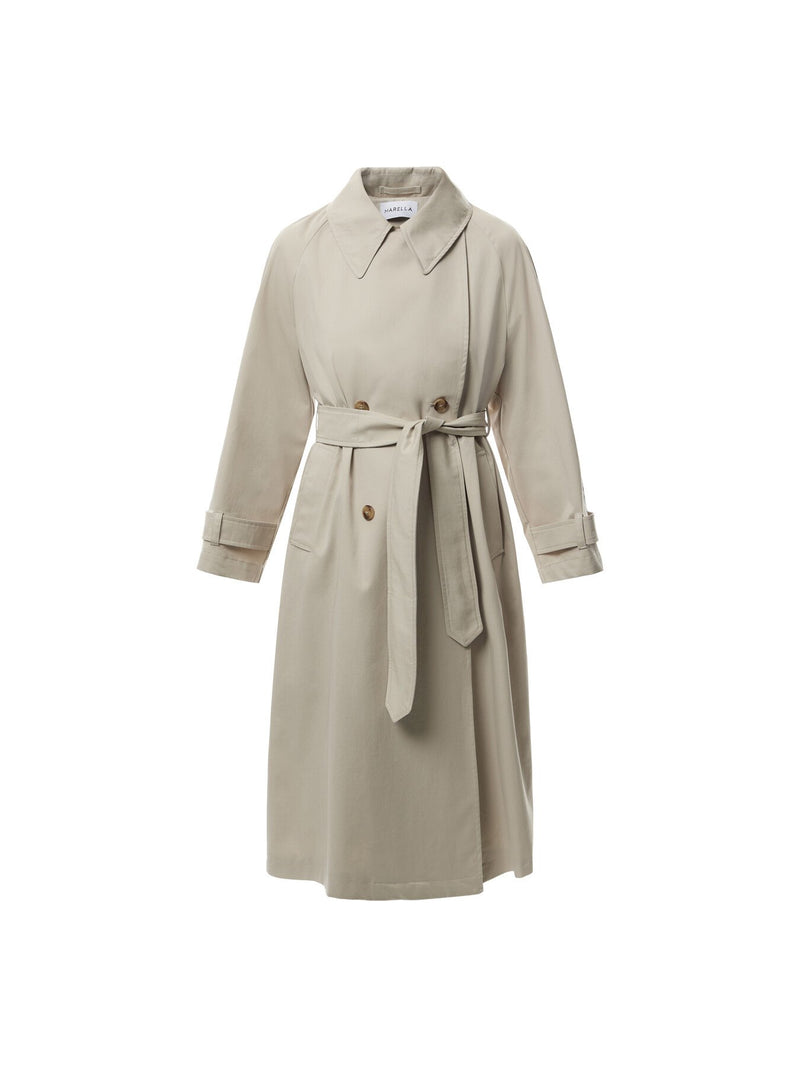 Long form: a below-the-knee take on the waterproof trench coat, complete with the staple double-breasted fastening and a silhouette-defining belt.