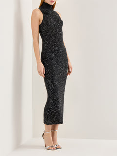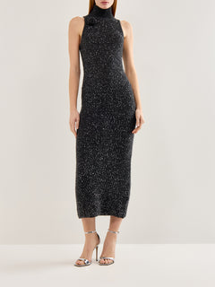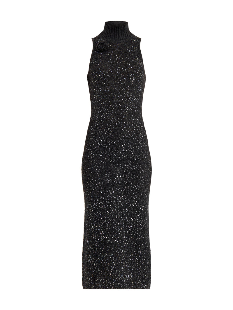 The Ilsa Dress by Marella is cut from a soft sequin knit with long sleeves and a gently flared hem. Its fluid drape and muted metallic tone make it a perfect piece for refined evening dressing.