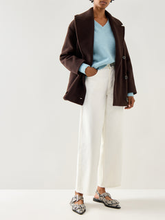 The Sport Oggeri Short Double Breasted Coat in black offers a sleek, tailored fit with classic double-breasted styling. Its short length provides a modern silhouette, making it a versatile choice for both formal and casual occasions. Crafted for comfort and style, this coat adds a polished layer to your wardrobe while ensuring ease of movement. Ideal for cooler weather, it combines timeless design with practical wearability.