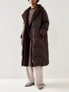 Sport Yole Long Maxi Puffer With Belt And Hood Brown