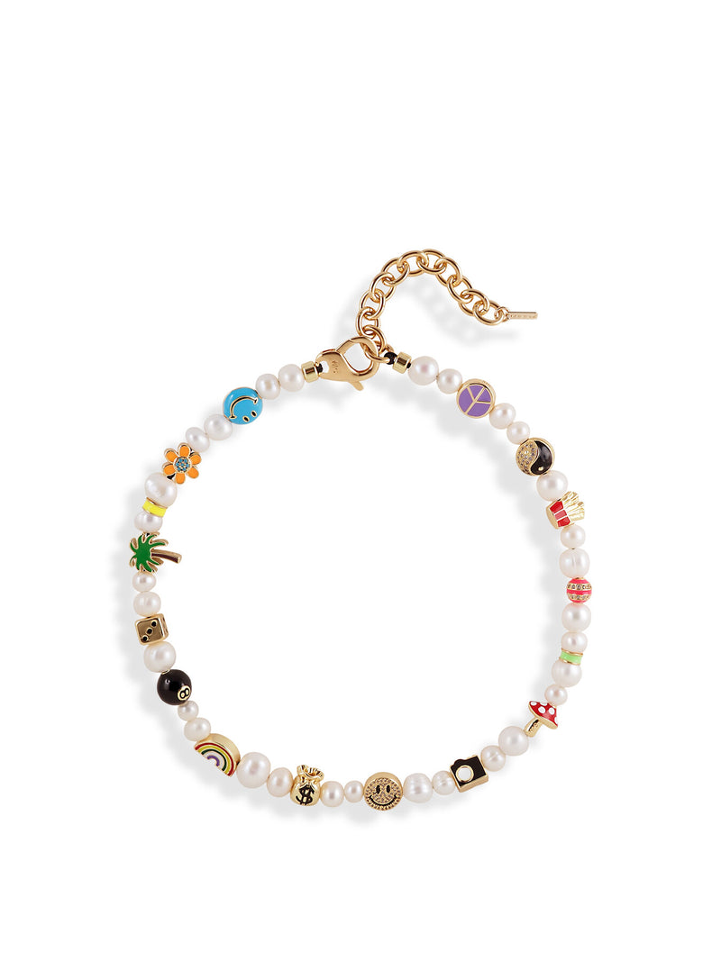 14kt Gold/Enamel/Freshwater Pearls/Pave Crystals14kt Gold/Enamel/Freshwater Pearls/Pave Crystals Famous Bracelet