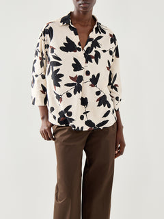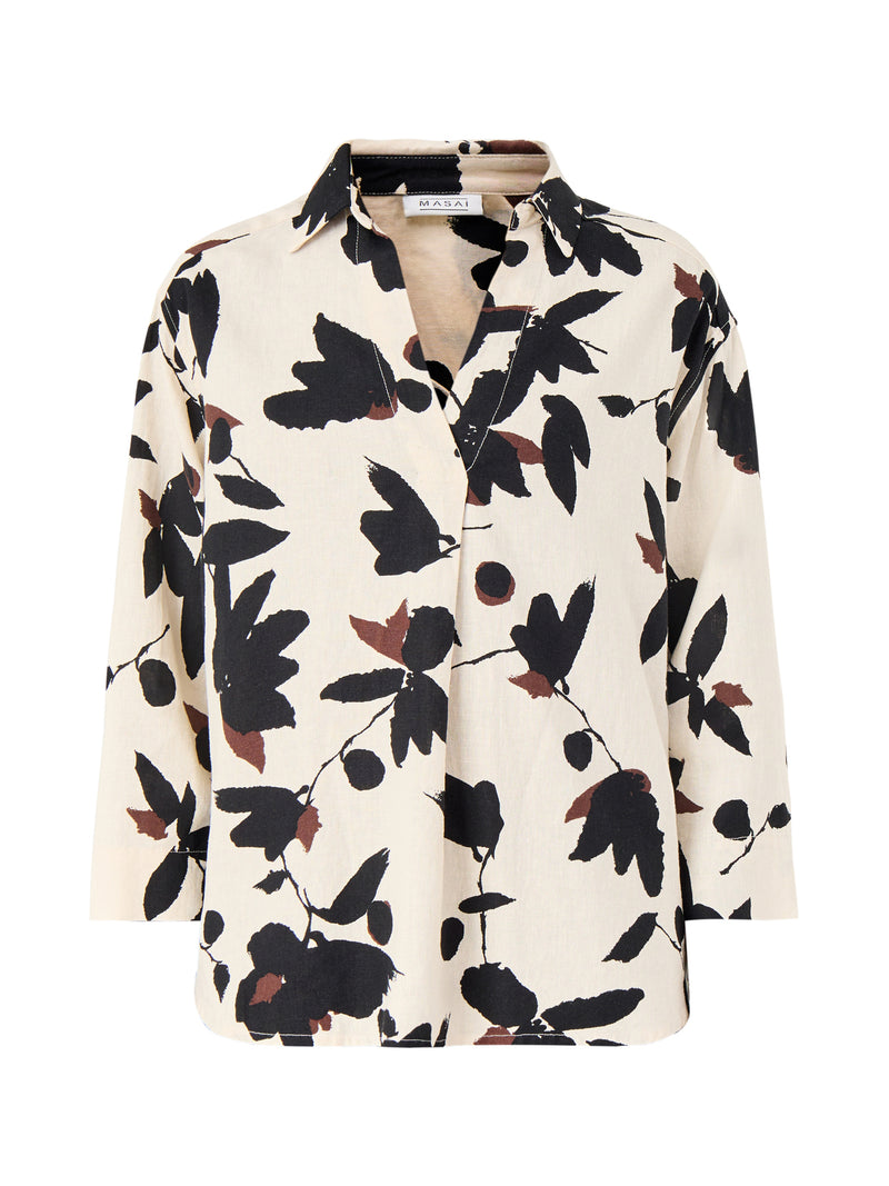 Darale Printed Linen Mix Top 3/4 Sleeve