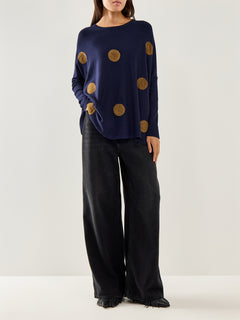 The Fanasi dot knit top by Masai Copenhagen is spun in soft yarn with a playful jacquard dot design. Lightweight and breathable, it brings texture to layering. A crafted knitwear piece shaped with timeless design and enduring comfort.