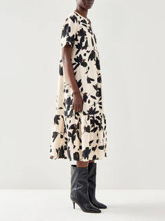 Nalaone Printed Linen Mix Dress Short Sleeve