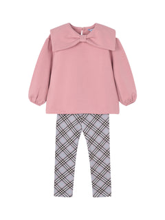 Bow Pullover Check Leggings Set