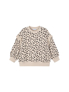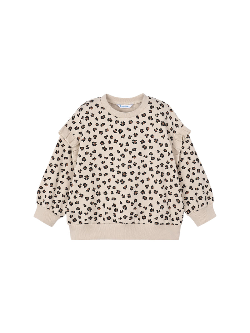 Leopard Ruffle Cotton Sleeve Pullover Sand