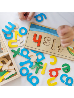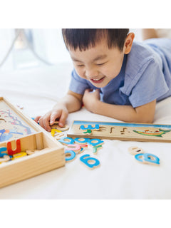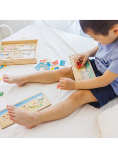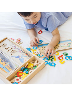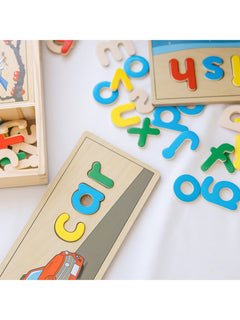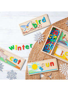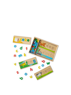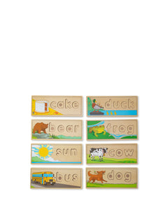 Complete a puzzle to spell a word! This handsome wooden puzzle set helps children gain familiarity with the letters of the alphabet and their sounds as kids develop a sight-reading vocabulary (English only). The letters are also wonderful for stenciling and lots of learning games. Over 50 colorful wooden letters fit into the eight two-sided cutout boards to spell three- and four-letter words.