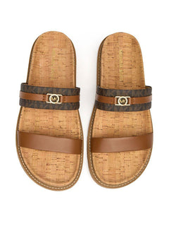 The Michael Kors Mandy combines sophisticated style with everyday comfort. These brown slides feature a luxurious blend of leather and textile on the upper, creating a versatile sandal that transitions effortlessly from poolside to casual outings.