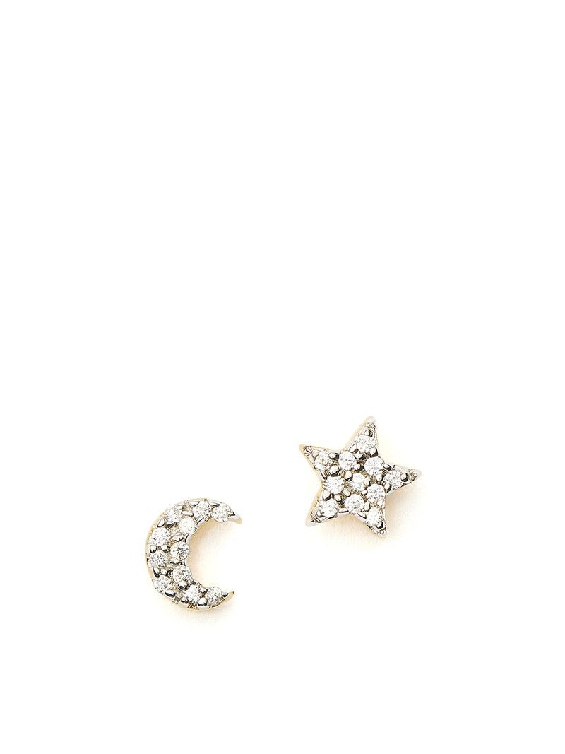 Pave Star Moon Stud Earrings Gold