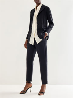 This Ghiera Nylon Stretch Blazer in black combines a sleek, modern design with practical comfort. Crafted from stretch nylon fabric, it ensures flexibility and ease of movement throughout your day. Its tailored fit delivers a polished silhouette, making it suitable for both professional and casual settings. The black color adds versatility, easily pairing with various outfits for a sharp, refined look.