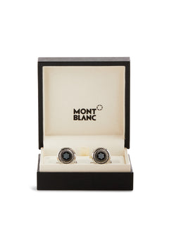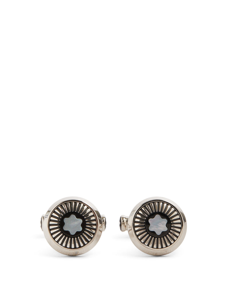 Round Cufflinks Ray Pattern And Mother-Of-Pearl Snowcap Emblem