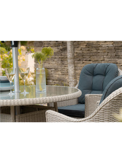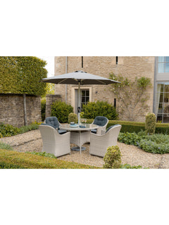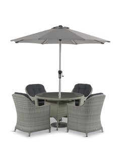 Monterey Rattan 4-Seat Round Dining Set with Parasol & Base