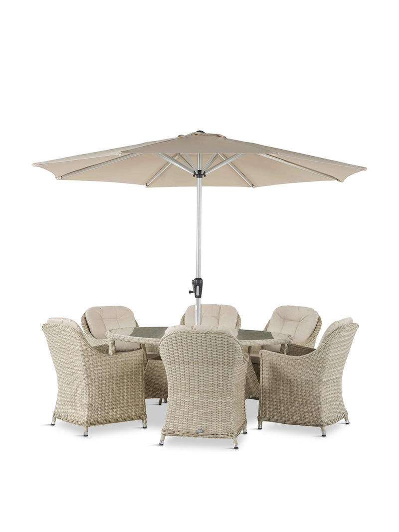 Monterey Rattan 6 Seat Elliptical Dining Set with Parasol & Base