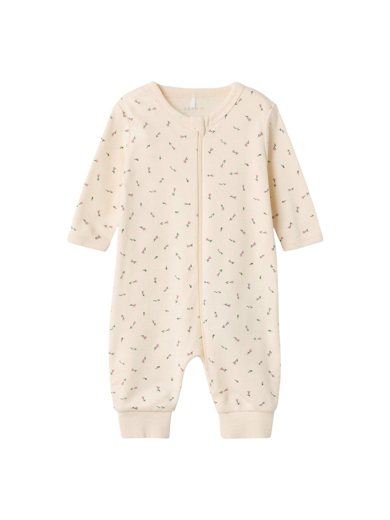 NBFNIGHTSUIT ZIP BUTTERCREAM FLORAL NOOS