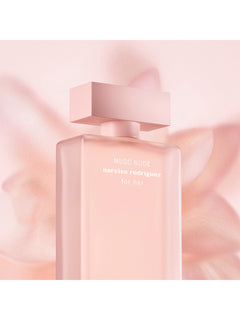 for her MUSC NUDE eau de parfum by Narciso Rodriguez. The sensual new perfume for women. The eau de parfum is composed around an elegant and timeless olfactive structure, enhanced with solar facets and the signature Narciso Rodriguez heart of musk. A piquant pink peppercorn accord meets an abstract floral bouquet of delicate white flowers as the fragrance gently caresses the skin. At the perfume’s core, the for her heart of musk is infused with floral notes of precious rose oil and orange blossom. As the fragrance dries down, rich tonka bean absolute blends with the softness of cedarwood and patchouli, embracing you in a feeling of caring warmth.