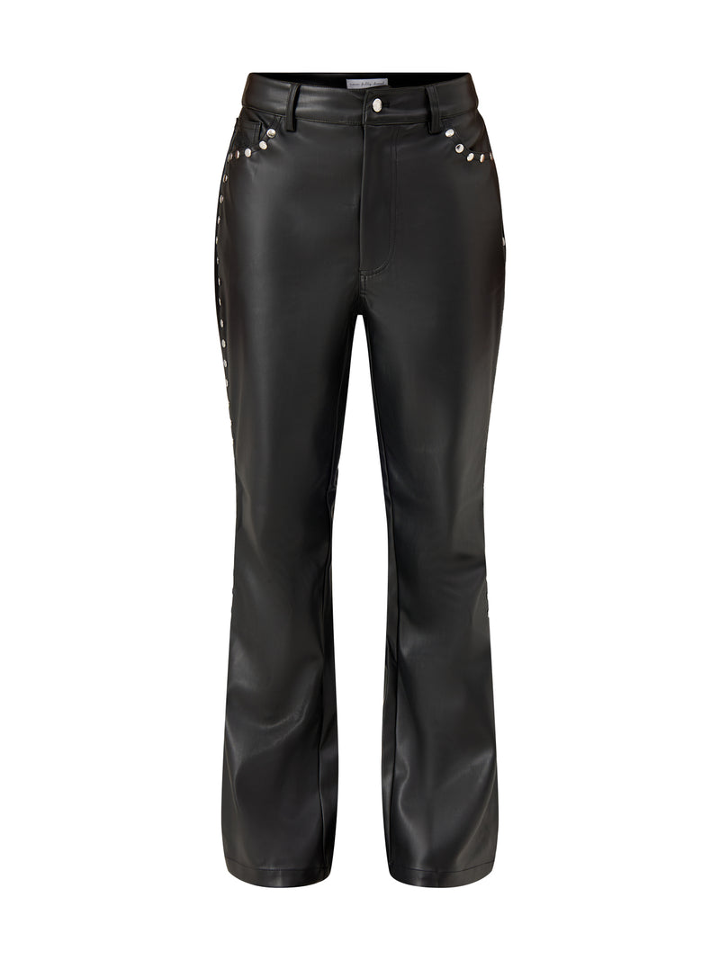 The Vegan Studded Trousers by Never Fully Dressed combine modern edge with sustainable design. Crafted from soft vegan leather and finished with polished studs, they bring statement style to evening or everyday looks.