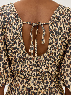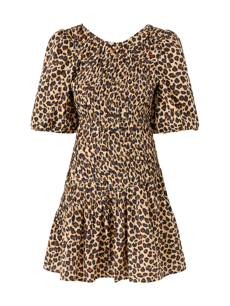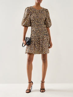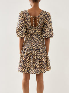 The Leopard Mini Nara Dress in brown features a stylish leopard print tailored in a mini silhouette, perfect for making a fashionable statement. Its lightweight fabric ensures comfortable wear throughout the day or evening. Ideal for layering or wearing alone, this dress offers versatility while adding a bold, trendy touch to your wardrobe.