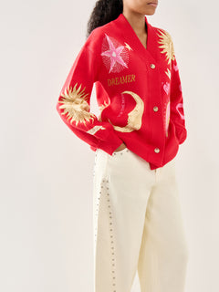 The Red Mystical Cardigan offers a vibrant splash of color with its bold red hue. Designed for comfort and style, this cardigan is perfect for layering in cooler weather, adding warmth without sacrificing elegance. Its versatile fit makes it suitable for both casual outings and more polished looks, giving you a reliable wardrobe staple that blends practicality with eye-catching design.
