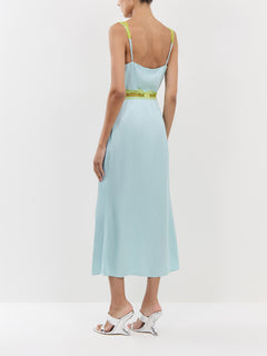 The Soft Blue Mimi Dress offers a delicate and comfortable fit in a soothing blue shade. Its lightweight fabric ensures ease of movement, making it ideal for both casual outings and special occasions. This dress combines simplicity with subtle elegance, providing a versatile addition to your wardrobe.