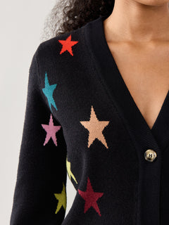 This Star Cardigan in black offers a versatile layering option for any wardrobe. Crafted for comfort and style, its soft fabric ensures warmth without weight. The classic black color makes it easy to pair with various outfits, delivering a timeless look suitable for both casual and more polished occasions.