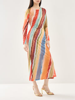 Sunset Stripe Mesh Midi Dress
