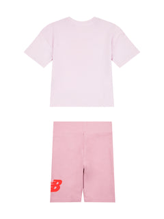 Girls’ Stacked Logo Tee & Cycle Short Set Pink