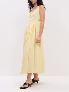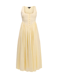 Butter Yellow Linen-blend Cora Midi Dress