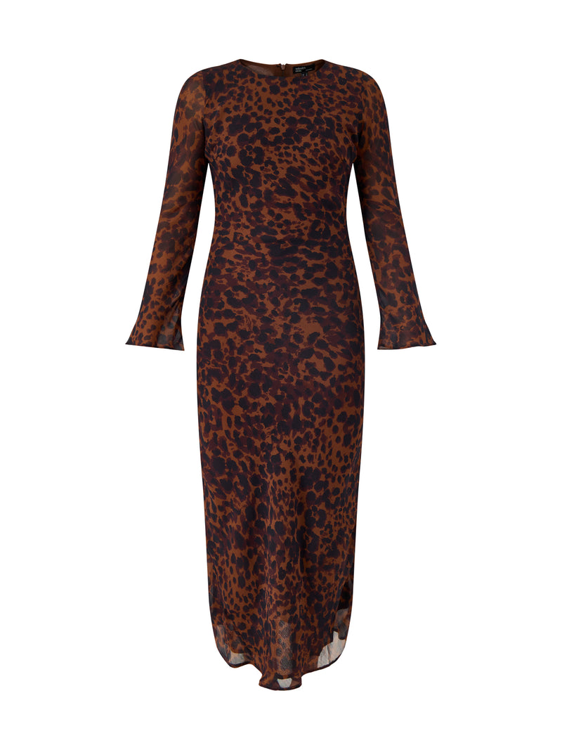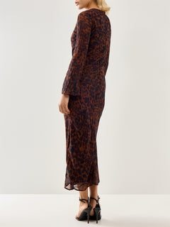 Clarissa Midi Dress Brown Animal Print