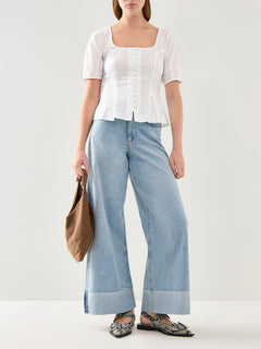 The Minerva Top in White is crafted from soft organic cotton, offering a comfortable and breathable fit for everyday wear. Its simple design makes it a versatile wardrobe staple, ideal for layering or wearing on its own. Made by Nobody's Child, this top combines sustainable materials with timeless style for conscious fashion choices.