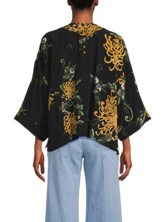The kimono jackets have loose ¾ length sleeves, an open front and a lightly embroidered lapel. The crepe Kimono is a heavier weight than our classic kimono. Pair with a matching camisole and your favourite jeans in summer or layer over a polo neck during the cooler months.