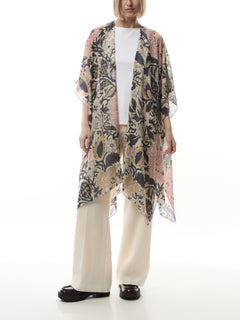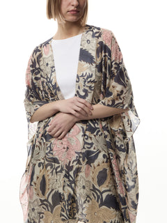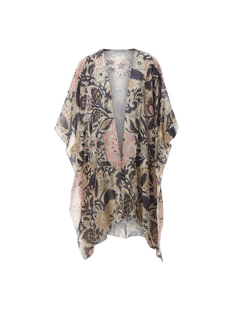 Inspired by a traditional Indian block print with eye-catching floral motifs throughout the design, we’ve also given this a neutral palette to make for a sophisticated but easy-to-wear print. These lightweight throwovers make the perfect cover up, they’re mid-length with an open front and loose arms they are suitable for the warmer months or worn on holiday as the ideal resort wear.
