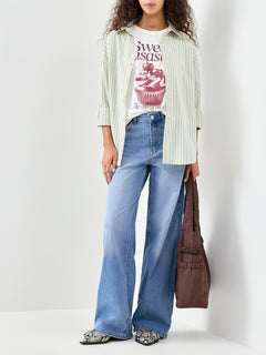 The Madison High Waist Wide Leg Jeans by Only are designed with a defined high-rise waist and full-length wide leg silhouette. Crafted from an organic and recycled cotton blend with stretch, they balance structure with comfort.