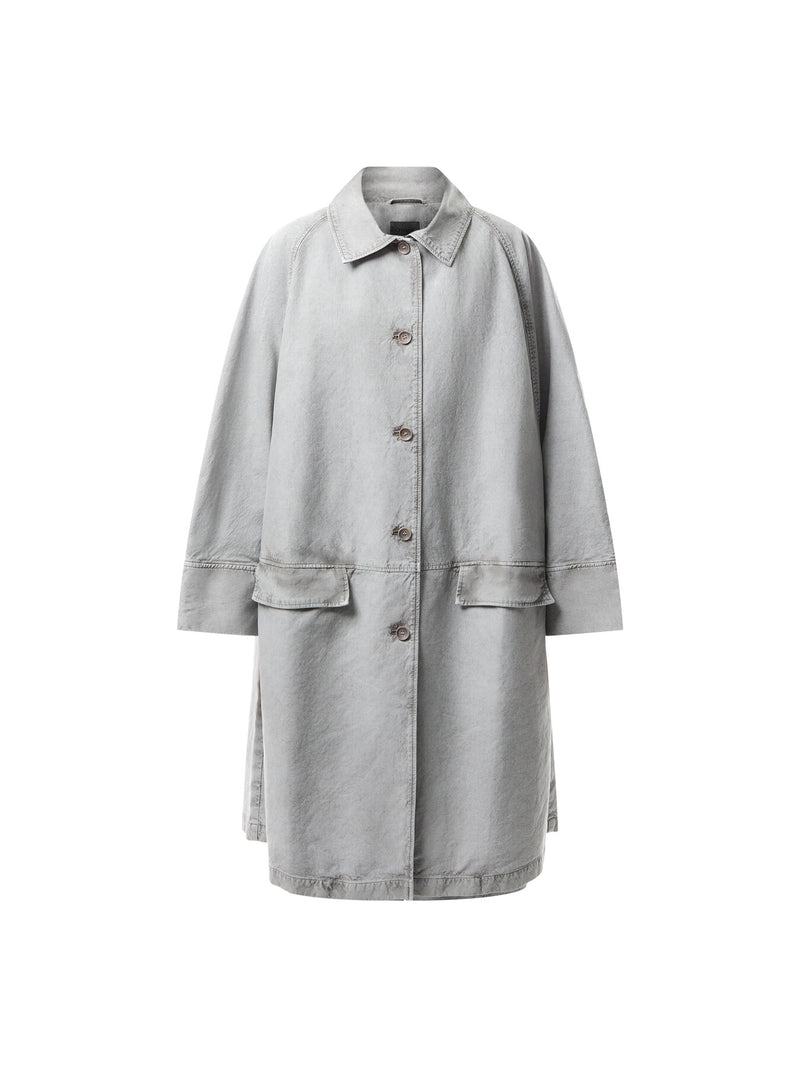 Perfect for the transitional season! This casual knee-length coat made of sturdy cotton is unlined and has a water-repellent finish. It has a comfort fit in a fashionable oversized fit with deep raglan sleeves that can be turned up, a shirt collar and button placket at the front. Flap pockets in the cross seam add a sporty touch and make it more than suitable for everyday wear.