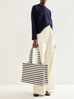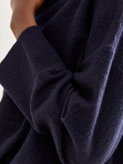This navy pullover features long sleeves crafted from soft cotton, offering comfortable wear and breathability. Its versatile design makes it an ideal choice for layering or wearing alone in cooler weather, combining practicality with classic style.