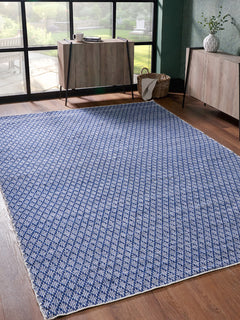 Indoor Outdoor Denim Blue and White Ikat Design Rug 230cm x 160cm