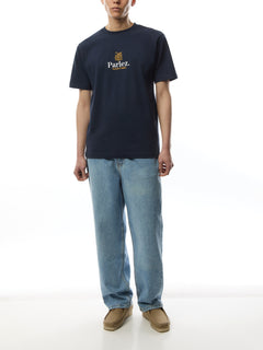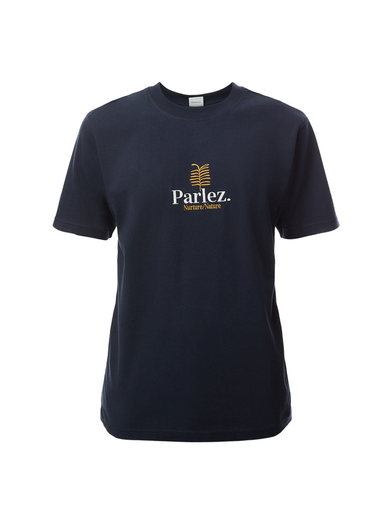 The Nurture T-Shirt in Midnight. A short sleeve tee made from premium, GOTS Certified 100% organic cotton with a classic ribbed crewneck. Featuring an embroidered design on the chest.