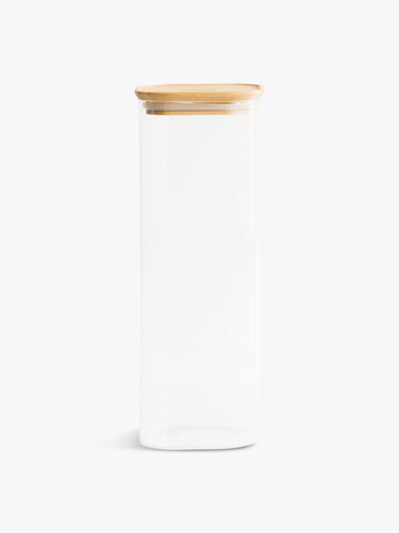 Square Tall Glass Food Storage Container with Bamboo Lid 2.2L