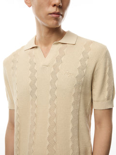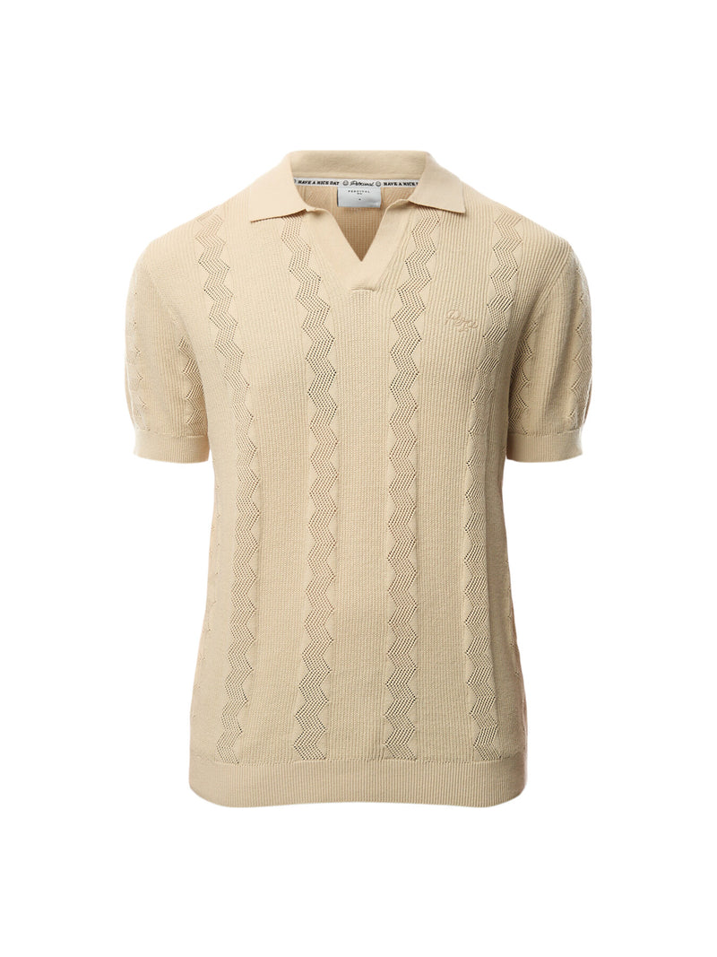 Percival Spring Summer 2025, full flavour, full Perci pomodoro, the sauce of good fits. Italian food, Percival flare and good quality knitwear. Genoa knit polo, look at the macros, the detailed shots, a tonal knit delight ribbed stitch met with zig zag, when others zig we zag. Quality design and make.