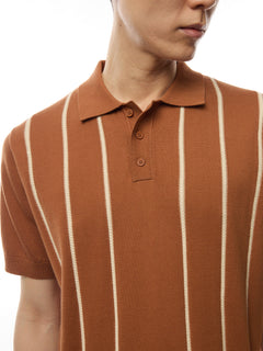 Imbued with a very British sense of humour, Percival is in the business of doing wardrobe staples a little differently. This knitted polo is a contemporary take on a retro classic, styled with a cable stripe and a 3 button placket, all in a rich Tobacco hue.