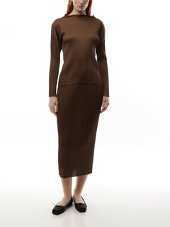 This brown pleated midi skirt has an elasticated waistband and side pockets.NEW COLORFUL BASICS is a seasonless series that offers in a range of versatile, simple styles in mellow colours.