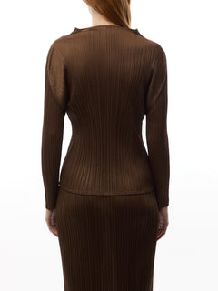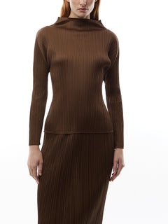 This brown pleated top has long sleeves and a wide mock neckline.NEW COLORFUL BASICS is a seasonless series that offers in a range of versatile, simple styles in mellow colours.