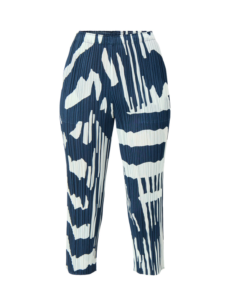 Discover the Pleats Refraction Print Slim Leg Pants, crafted with style and comfort in mind. Perfect for elevating your everyday wardrobe.