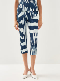 Pleats Refraction Print Slim Leg Pants
